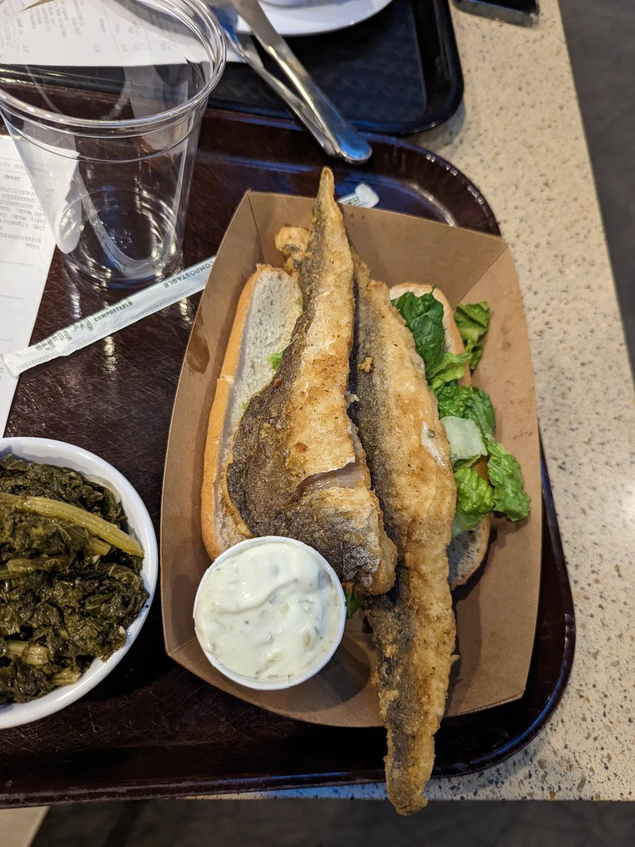 Ok, now that we were inside we ate at the car since it was supposed to be decent, i would say it was. Overpriced, of course but decent southern-y food, i liked my po'boy sandwich's fish and the sides were actually very good.