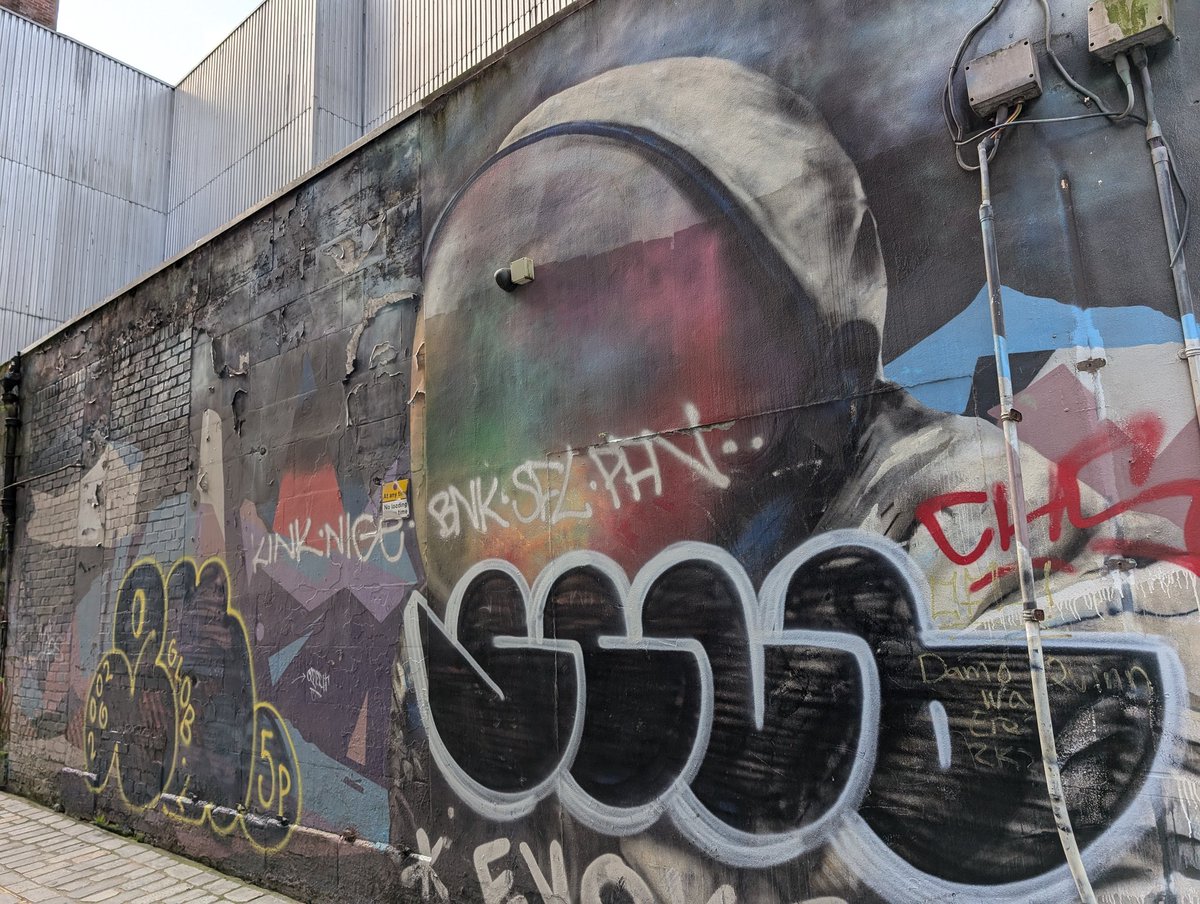 The broken plaster there made them almost not do the painting on the wall but the artist, "Smug", was like no worries, I can make it work