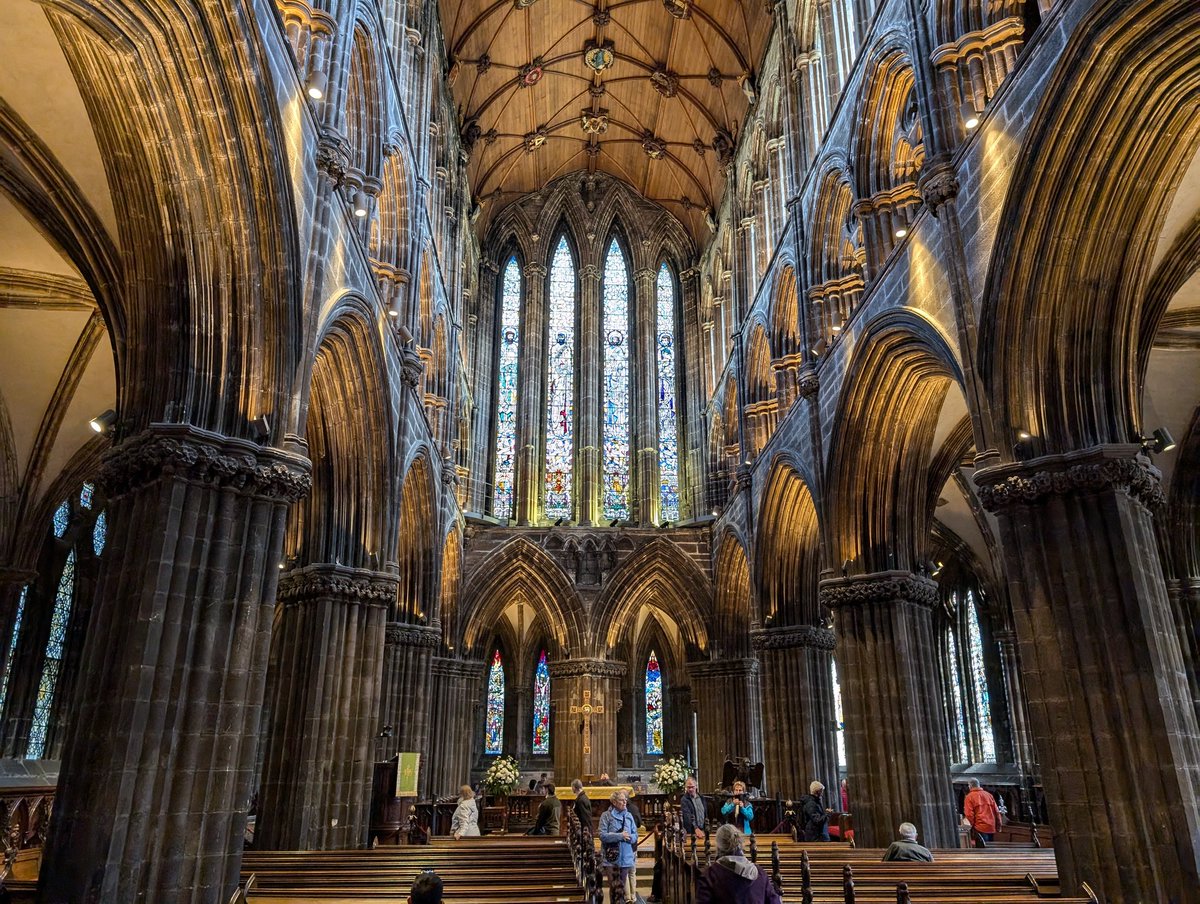 Also known as St Mungo's cathedral as his bones lie here. About 1267. Oldest building in mainland Scotland. Blackened by soot during the industrial revolution