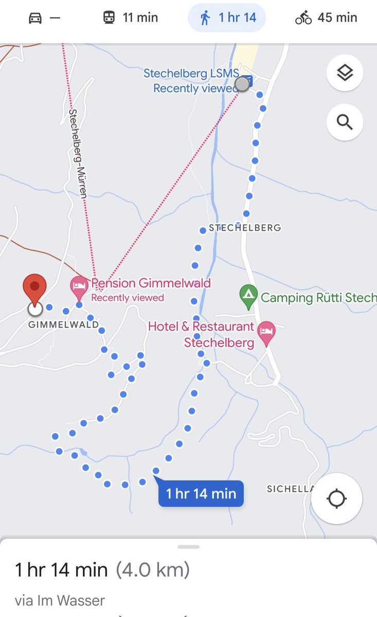 The car was at Stechelberg (922 meters up) and we were in Gimmelwald (1367 meters up) and the paragliding started at Mürren (1638 meters up) so we left dad and his wife at Gimmelwald to fend for themselves and decided to walk up to Gimmelwald rather than take the cable car