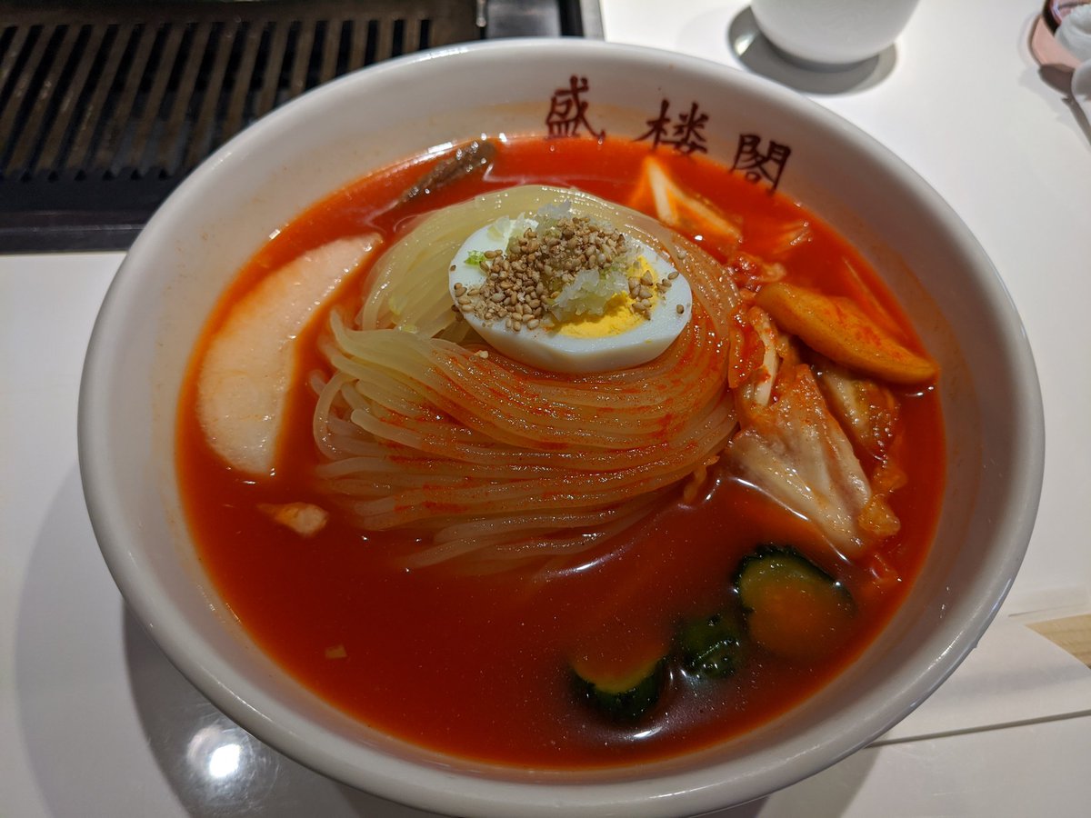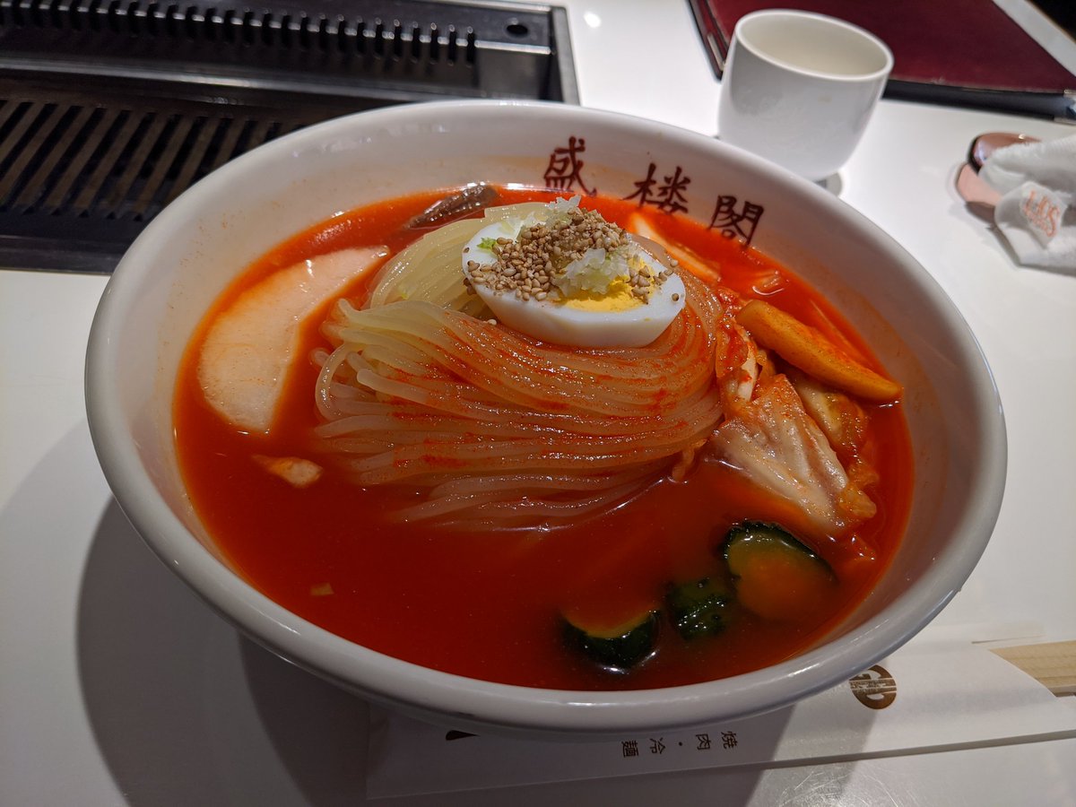Time for the last of the Three Great Noodles of Morioka, Reimen which are a cold spicy noodle dish, yes that's a slice of watermelon