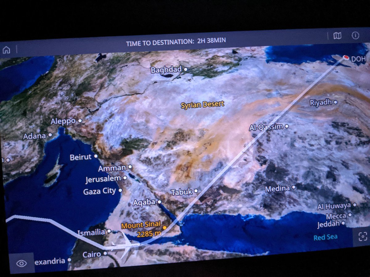 Landed in Doha and have a 3 hour layover before heading off to Amman. I appreciated the "do not go through Syria" swerve our plane did. Mostly uneventful flight (though she did steal my house cancelling headset!) with unremarkable food