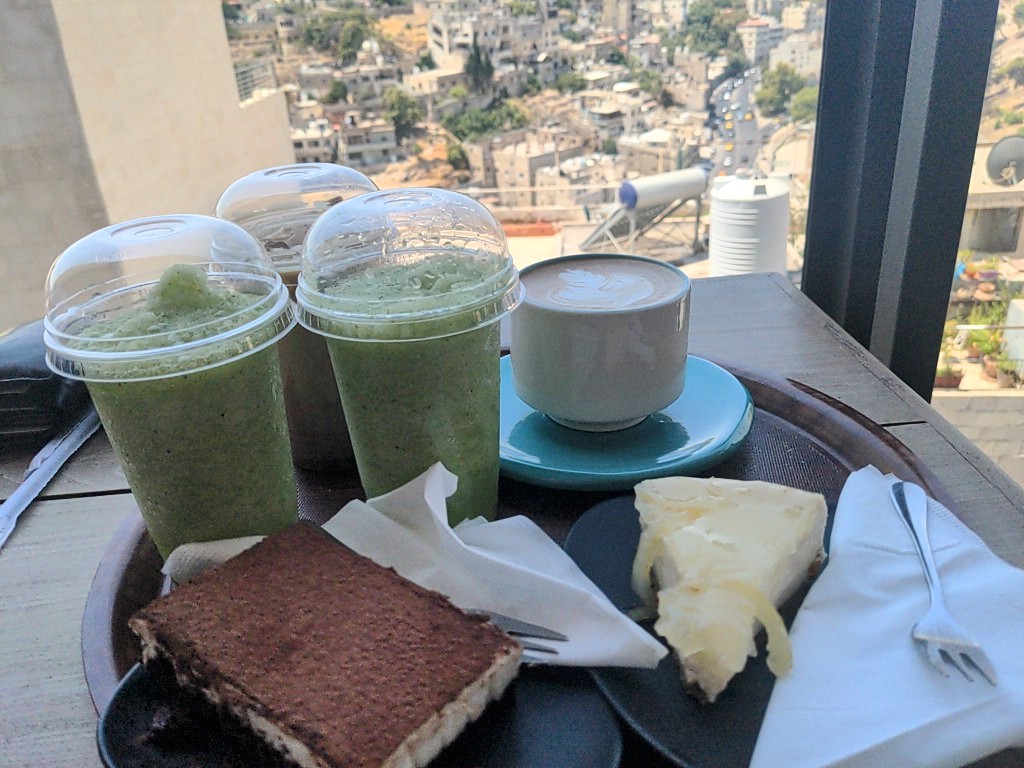 So we got a tiramisu cheesecake and a lemon one, some coffee and some more mint lemonades on a nice view overlooking the city near the Citadel