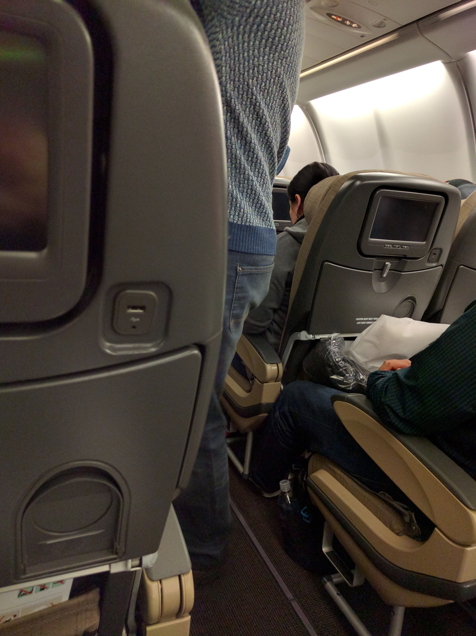 Oh last thing. Writing these from my phone is surprisingly painless though I'm not proofreading too much so expect lots of SwiftKey-y errors every now and then. OK now to wait for realsies (hmph it doesn't believe realsies is a real word, how rude). Also as a reminder to myself where to pick up the movie, I'm at 1h12m. Oh another random thought, I almost said wtb window seat but I guess I actually had the option to buy and didn't so not really willing 😋. Now 10mins to landing. Huh, landing didn't even interrupt my movie, truly living in the future. 1h26m now. Still eh movie.