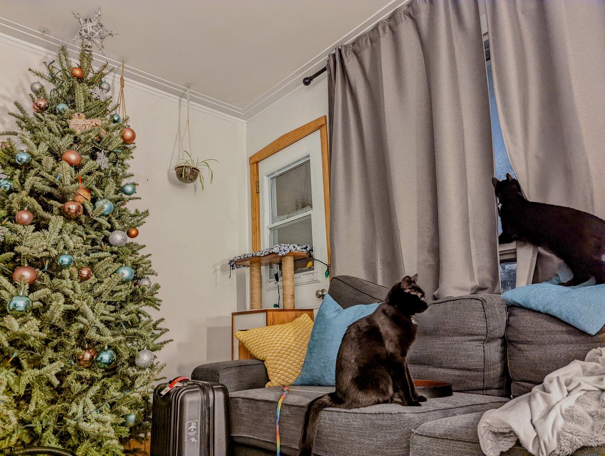 Time to crash to wake up early, the air mattress does seem to lose air quickly with both of us on it but shhh don't want to make a fuss so i moved to the couch to stem the losses. Also having two curious cats prowling about is distracting but they're adorable....cat tax pic: