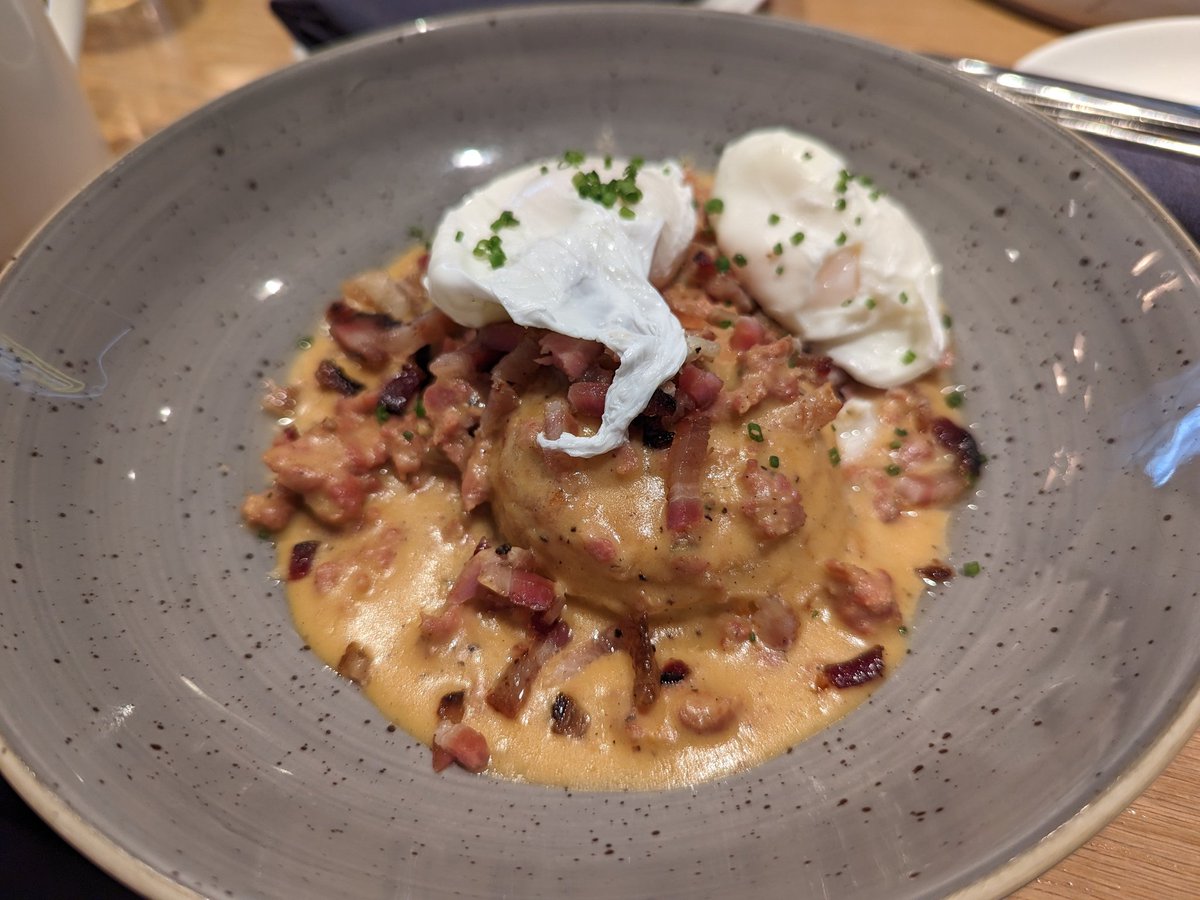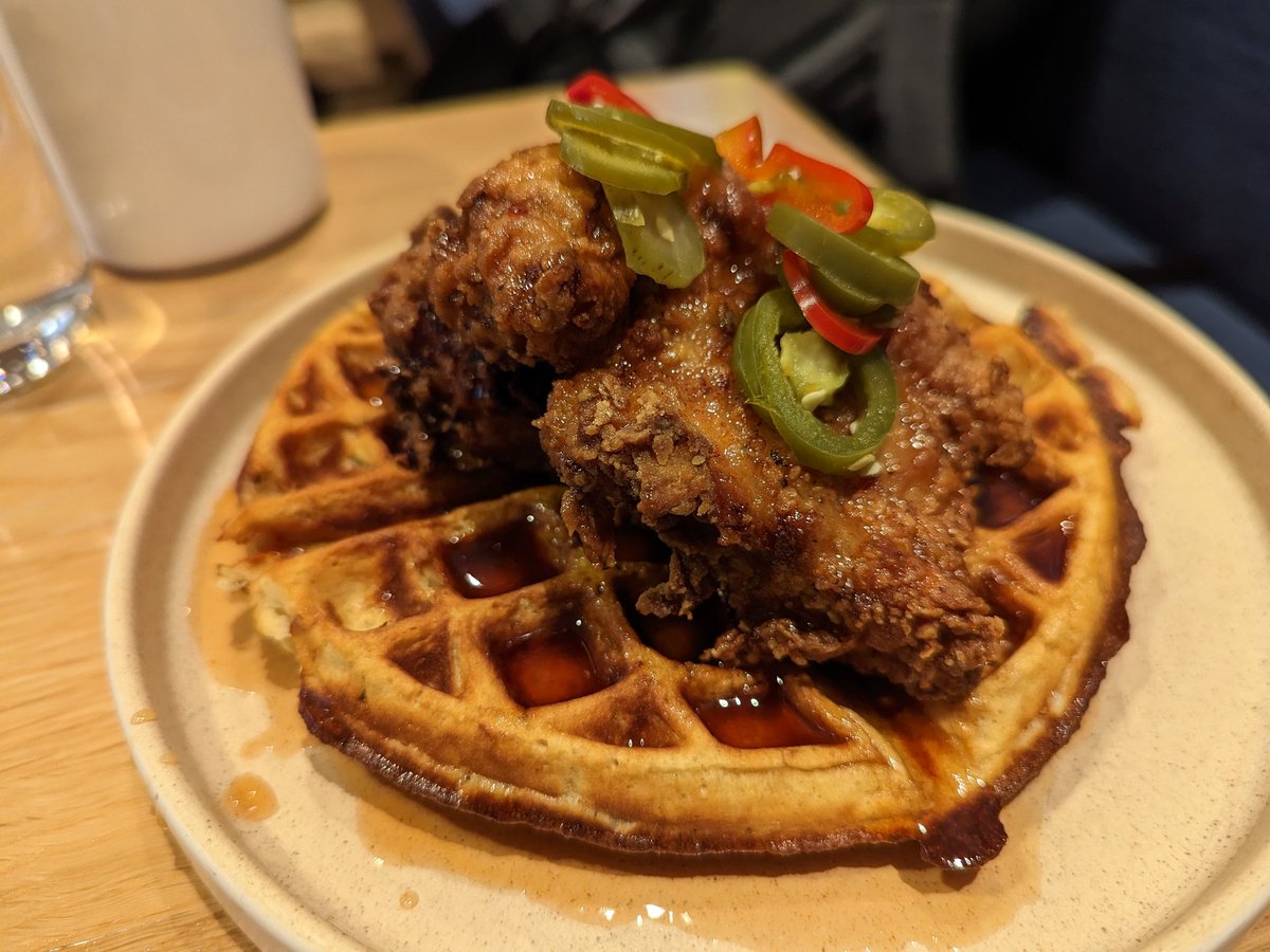 Brunch at the hotel! Pretty decent chicky waffles and biscuit and gravy