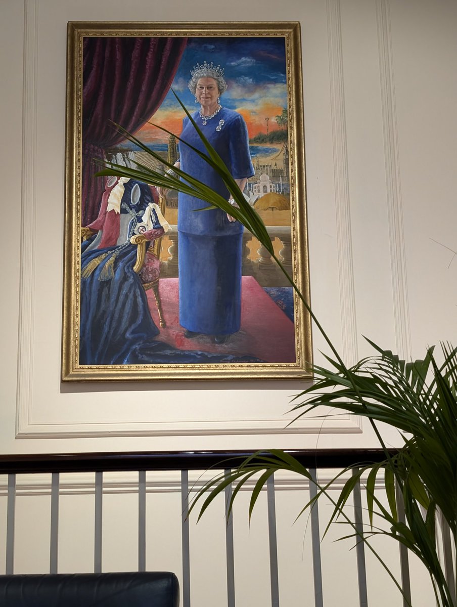 She also ended up escorting there because if we got lost they'd getting in trouble, also mumbled about how he should have given us a pass ahead of time, which fair, the reception room had a portrait of the late great