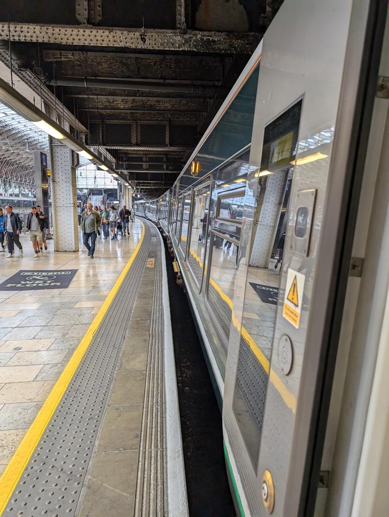 Walked to Paddington station to catch a train to Slough->Windsor. The station reminded me of Frankfurt a bit but I like this style a lot... Now we wait