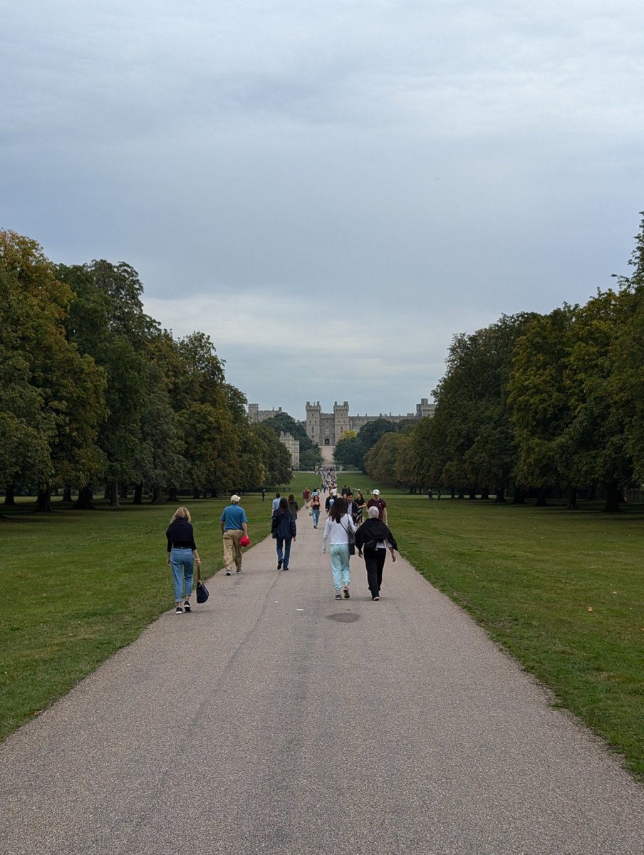 Spent a bunch of time walking down the "long walk" of the castle after some food and coffee (which was pasable, Nero's) with her friend, husband and two kids, played soccer-adjacent things with the 8 year old who had boundless energy