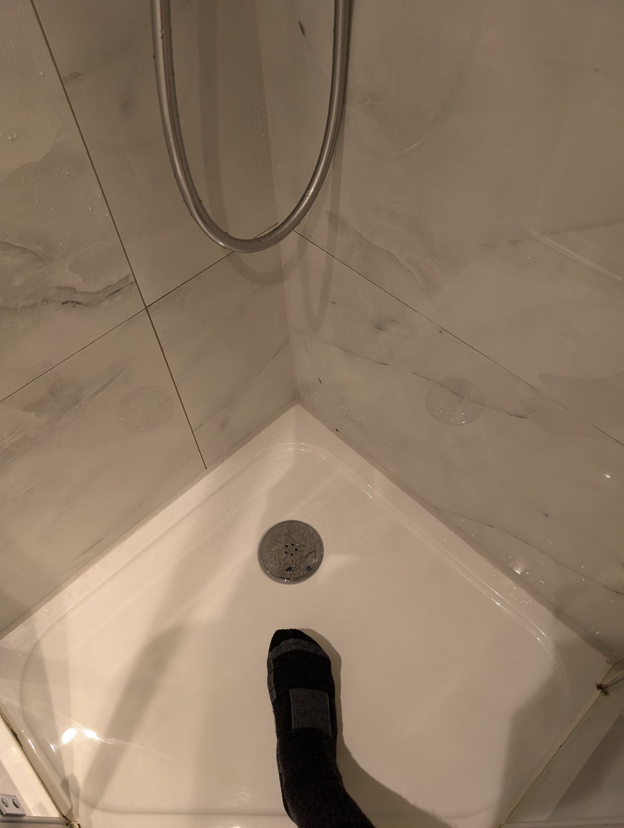 Pictures of the room, hallway and bathroom with a preview of my onlyfeet for scale in terms of the actual size of the shower... To be honest it's only really the bed and pillows that really get to me, the size and worst-in-class soundproofing are much easier to ignore and forgive