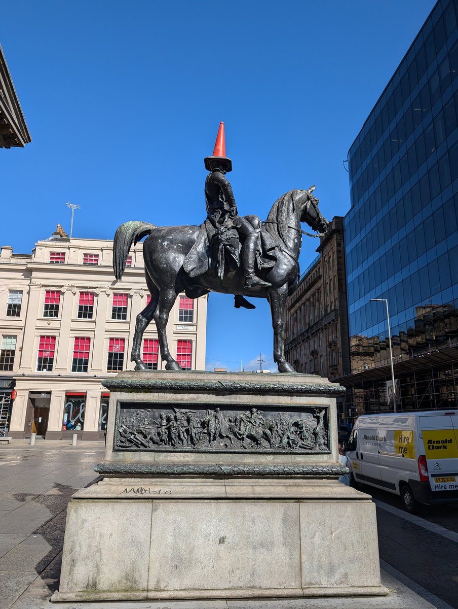 In case you missed it in the GoMA shot this Wellington statue has a cone for a head