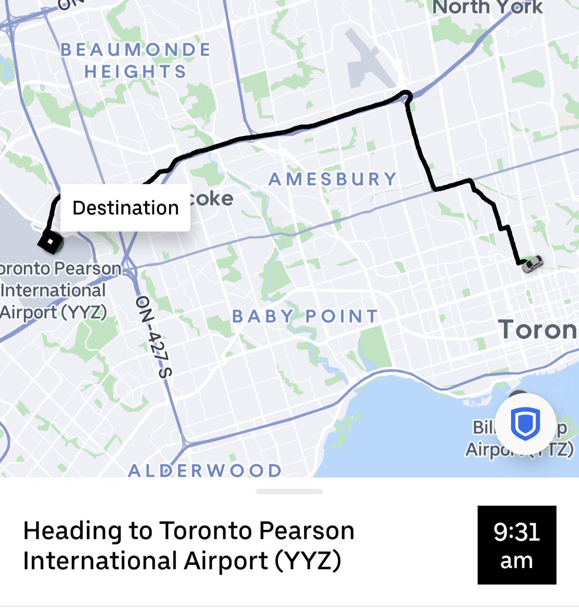 Now in the Uber to the airport, 10ish mins off schedule but predicted ETA is about what we planned.