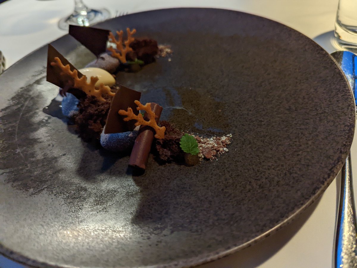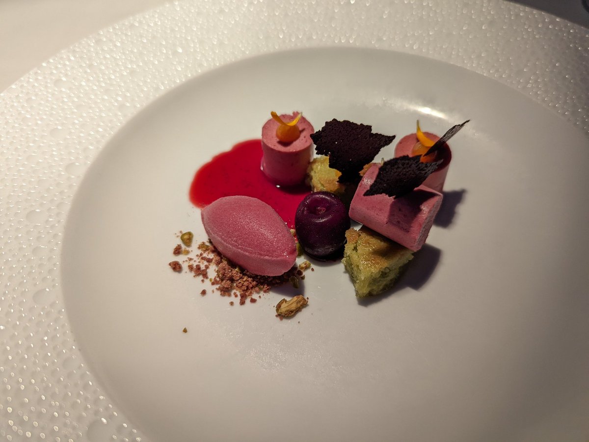 Then here trout, cheese platter, passion fruit + pistachio dessert, chocolate dessert