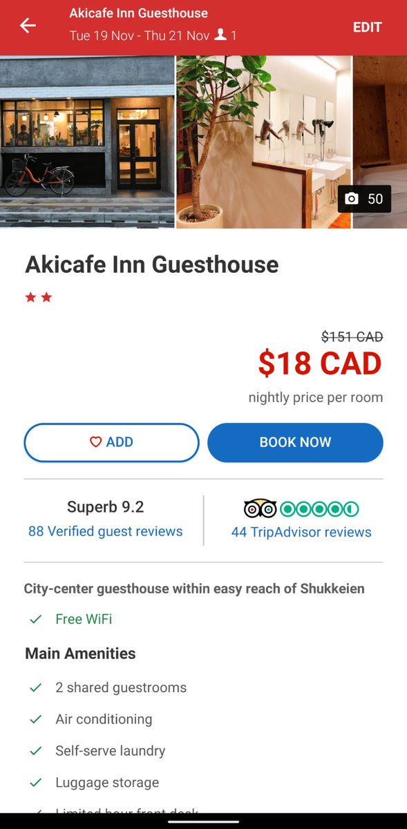 Booked a place for Hiroshima, some random hostel that had a 9.2 score and was only $20 a night, INSANE value as long as it's not completely terrible