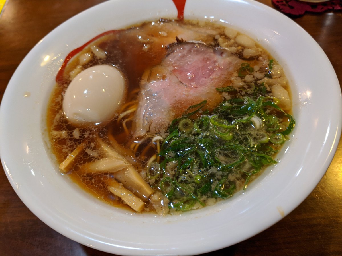 It was pretty good, it uses flat, noodles, shoyu with some fish component and I think chicken for broth and some fat chunks just chilling