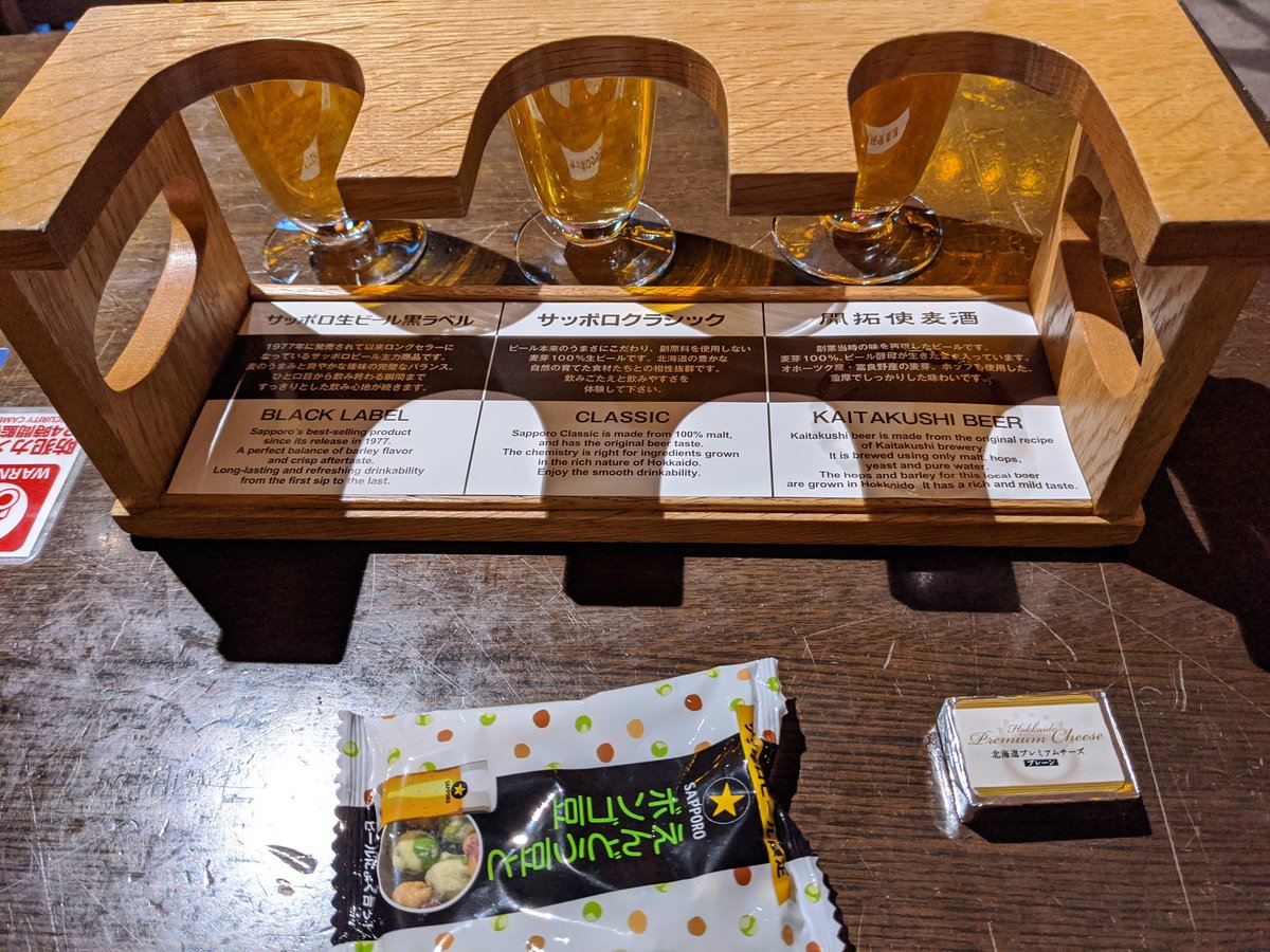 We got th we at the end of the premium tour, one was the black label, the other Fukkoku Sapporo beer, at first I misheard which glad was which and was disappointed I liked the black label more but the Fukkoku was really nice j