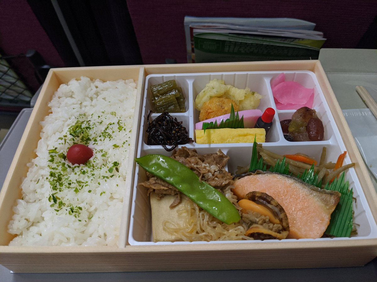 Got an ekiben for the ride, didn't even see what's in it, just asked for the recommended one, so I guess we'll be surprised together in the train