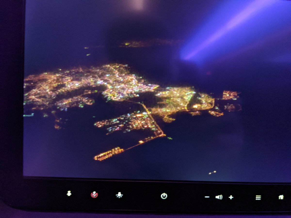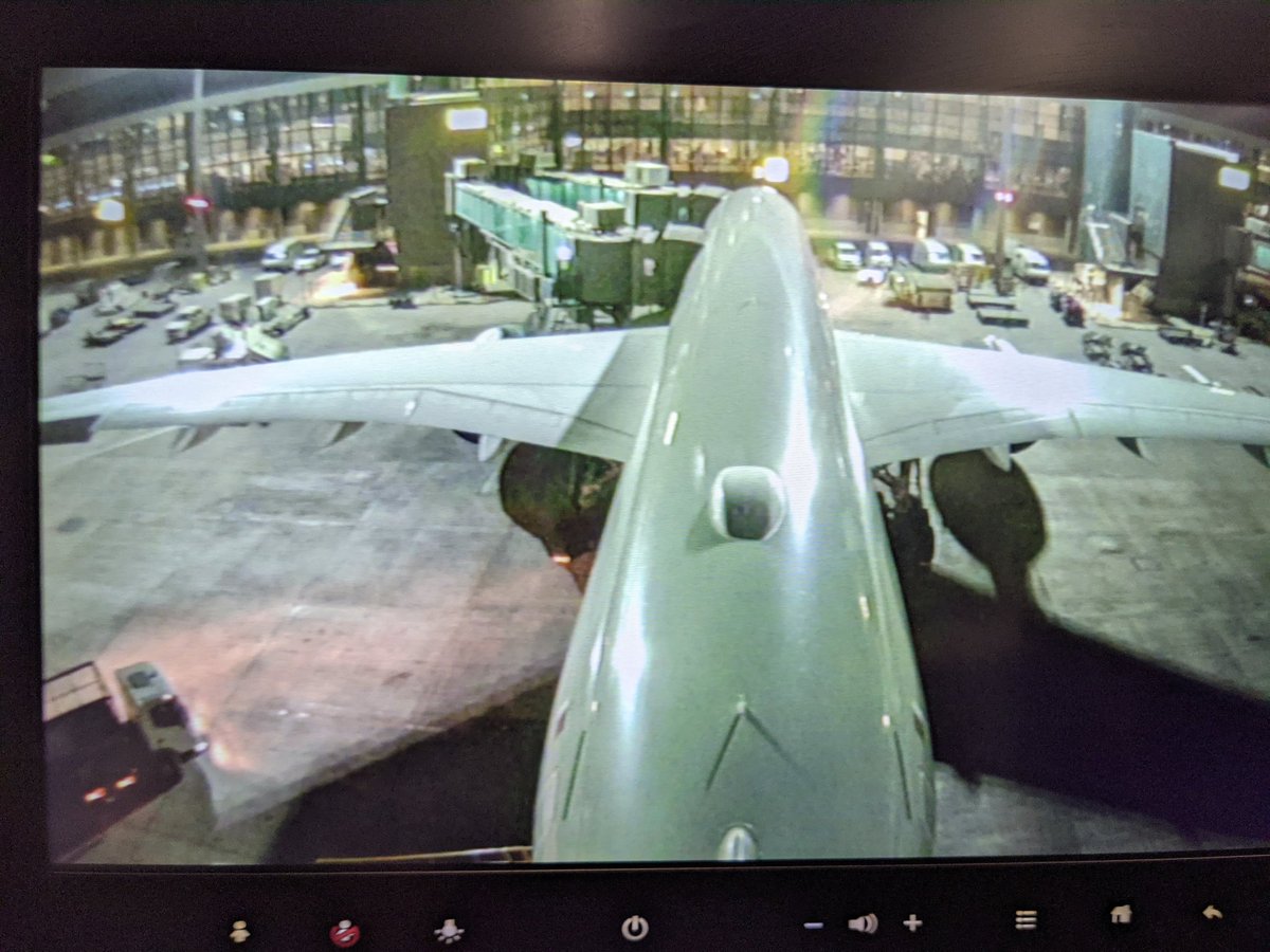 Got 1 hour of free wifi which is pretty cool, plane was delayed an hour due to some problem with the bathrooms but it seems to be on track to only be 20 mins late, love plan scheduling. I also saw this plane has dashcams which is neat, a bit blurry at night but a cool concept!