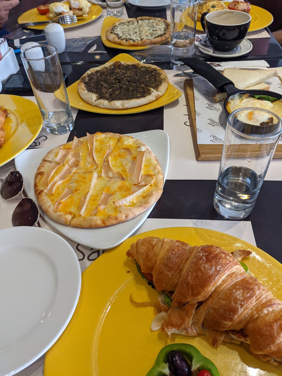 So we went to Crumz, which started as a bakery and expanded. Got some manakeesh to share and a croissant. Was pretty tasty! We talked for a bit since, some talk about political figures like Chavez and al-Assad and their similarities. Fairly pleasant chat (though it dragged a bit)