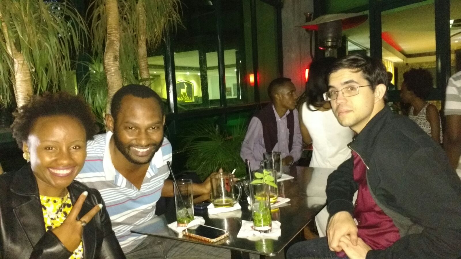 3:54 On my way to Nanyuki for the night. About an hour and a half left out of 3 and a half. This time my previous writing got sidetracked by breakfast. I have to say on this long drive the amount of random speed bumps would infuriate me if I were driving long distances. Anyhow, trying to catch up now that most people are waking up and getting ready for work or still sleeping leaving few distractions (last two hours were probably better for that but it was hot and it made me lethargic and not motivated). Back to Brew Pub Bistro, after their friends got back things got a bit more active, people started to dance a bit even though there was no good place around the tables, really. At some point I pretty much shut down due to sleep deficit / still adjusting and even trying to dance was futile though it did energize me briefly. I felt bad for because it was still early and I wanted to enjoy myself more but I was just dying. Eventually at like 12:11 we headed back and 12:32 reached the glorious bed and collapsed. It was beautiful.