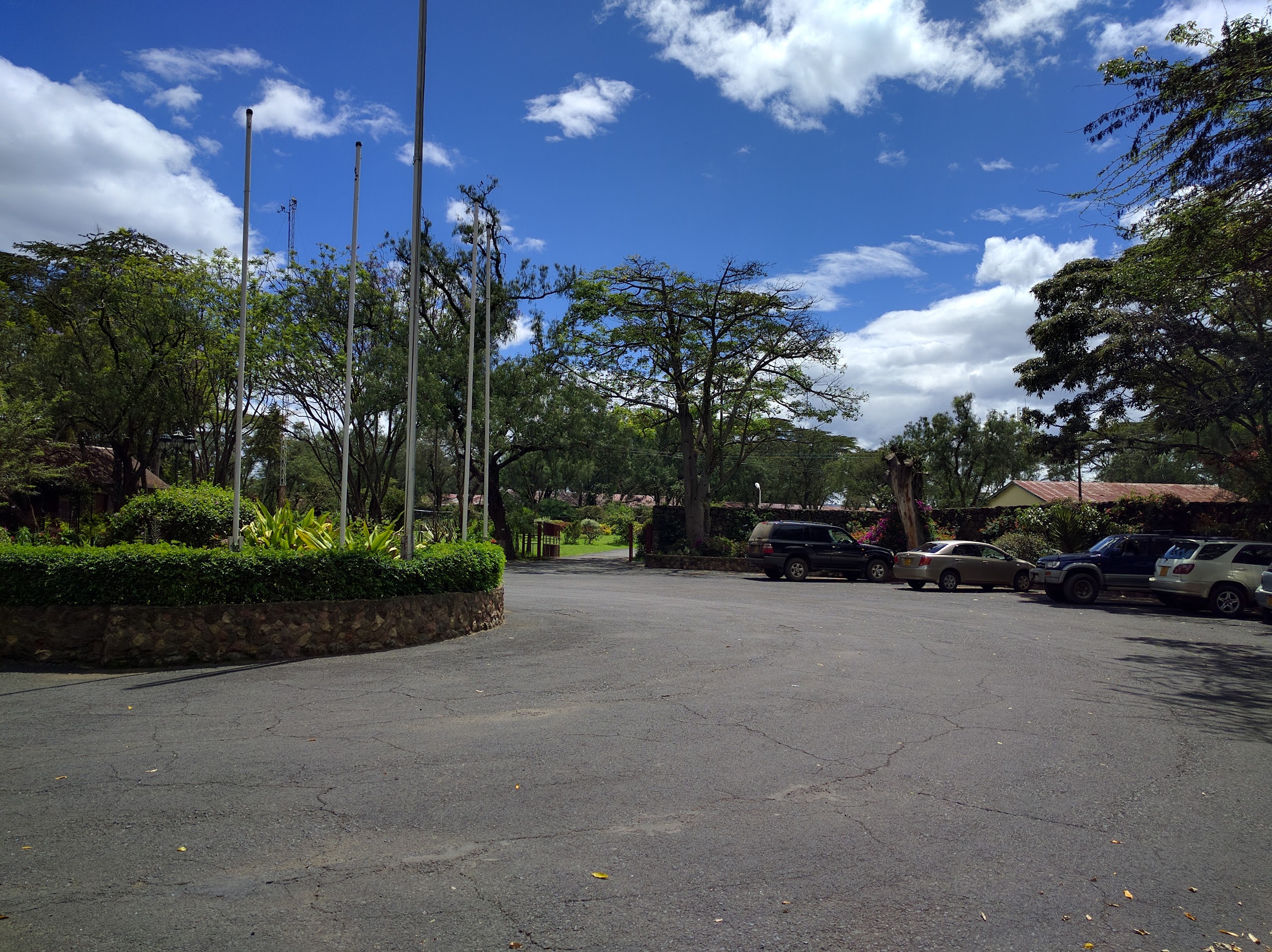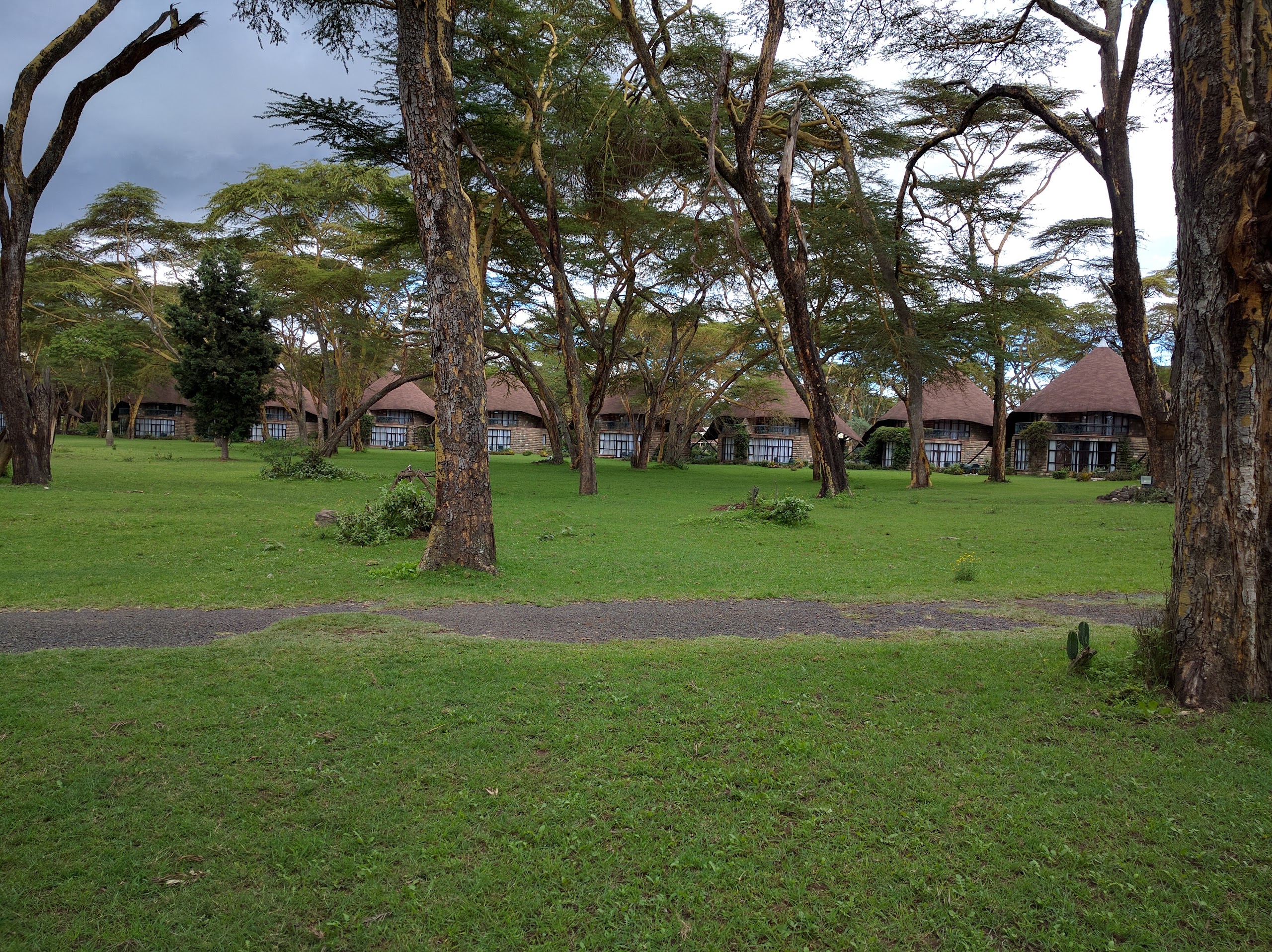 The next morning I think I woke up before everyone around 7? And just spent some time idling until at some point Wambui appeared and offered to make breakfast while I showered. The shower used a basin of hot water + more normal shower of cold and I kind of improvised, hopefully not making too big a mess. After that I had the breakfast she made along with some ginger tea, it was an omelet with like tomato and onion and... Banana! It worked surprisingly well I have to say. Her mom woke up at some point and I got to say good bye, I feel a bit bad because I hadn't expected to be hosted and didn't have anything to really give thanks with. Anywho by then our ride had arrived and we first dropped Wambui at Strathmore University where it took a bit because some military looking police were conducting some drills and weren't letting people in. After that I was driven to the Intercontinental where I'd started a previous entry from. After a very long 10 minutes, it turned out they'd been having a businessy breakfast with someone associated with the Secretary General of the UN. We picked up Joy (the same one I met my first night here) and went to pick up Emi, a lecturer and pretty interesting person, before we headed to Naivasha. The drive was relatively uneventful and took around one and a half hours, but I would also layer find out some people refuse to go with Luis and took the slower bus because they're really scared when he's driving. I'd actually planned to use that drive to finish up a post but someone distracted me the whole way, cough. We arrived at SOPA lodge.